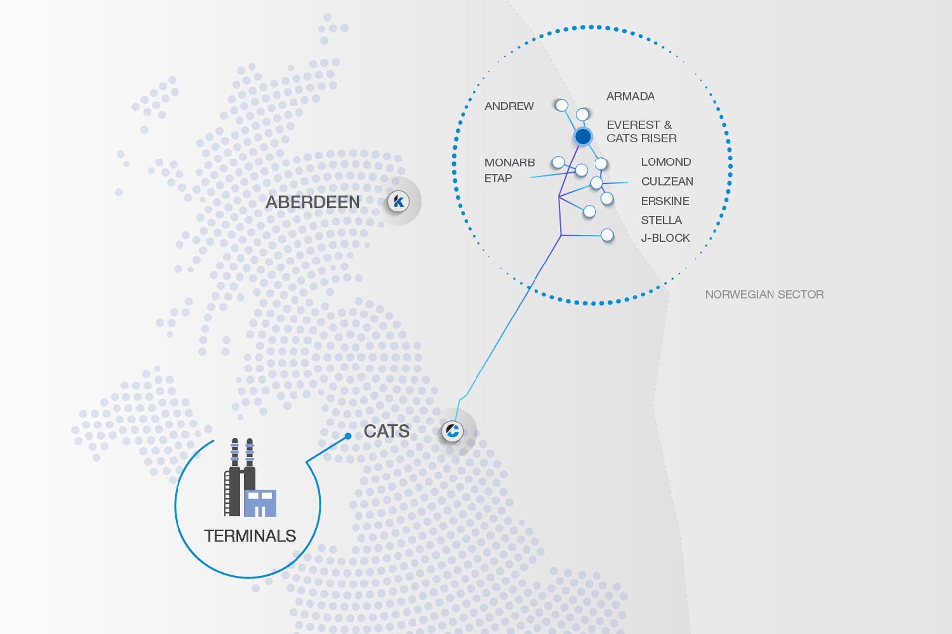 CATS currently serves more than 30 producing fields, connected via a series of production hubs.